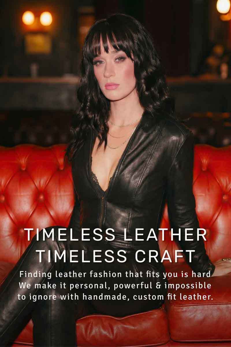 Whether you're completely new to leather or an experienced enthusiast, our commitment to providing the finest quality of premium leather apparel remains unchanged. Explore our extensive collection of leather corsets, skirts, dresses, trousers, and jackets, that are available in a variety of designs, colours, and sizes, including petite and plus sizes. Browse with confidence, knowing that each item has been carefully handmade to exceed your expectations.